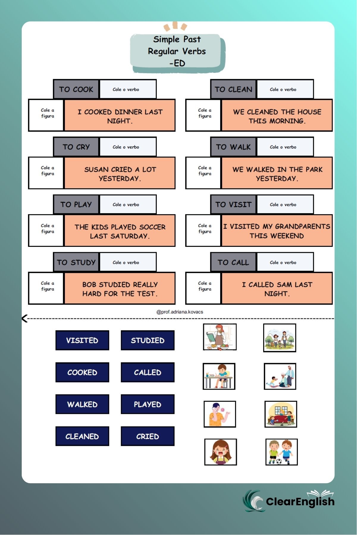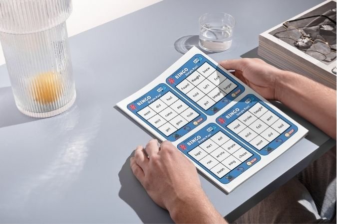 Card game com 40 cartas, perfeito para praticar o “Simple Present” de forma dinâmica e coletiva.