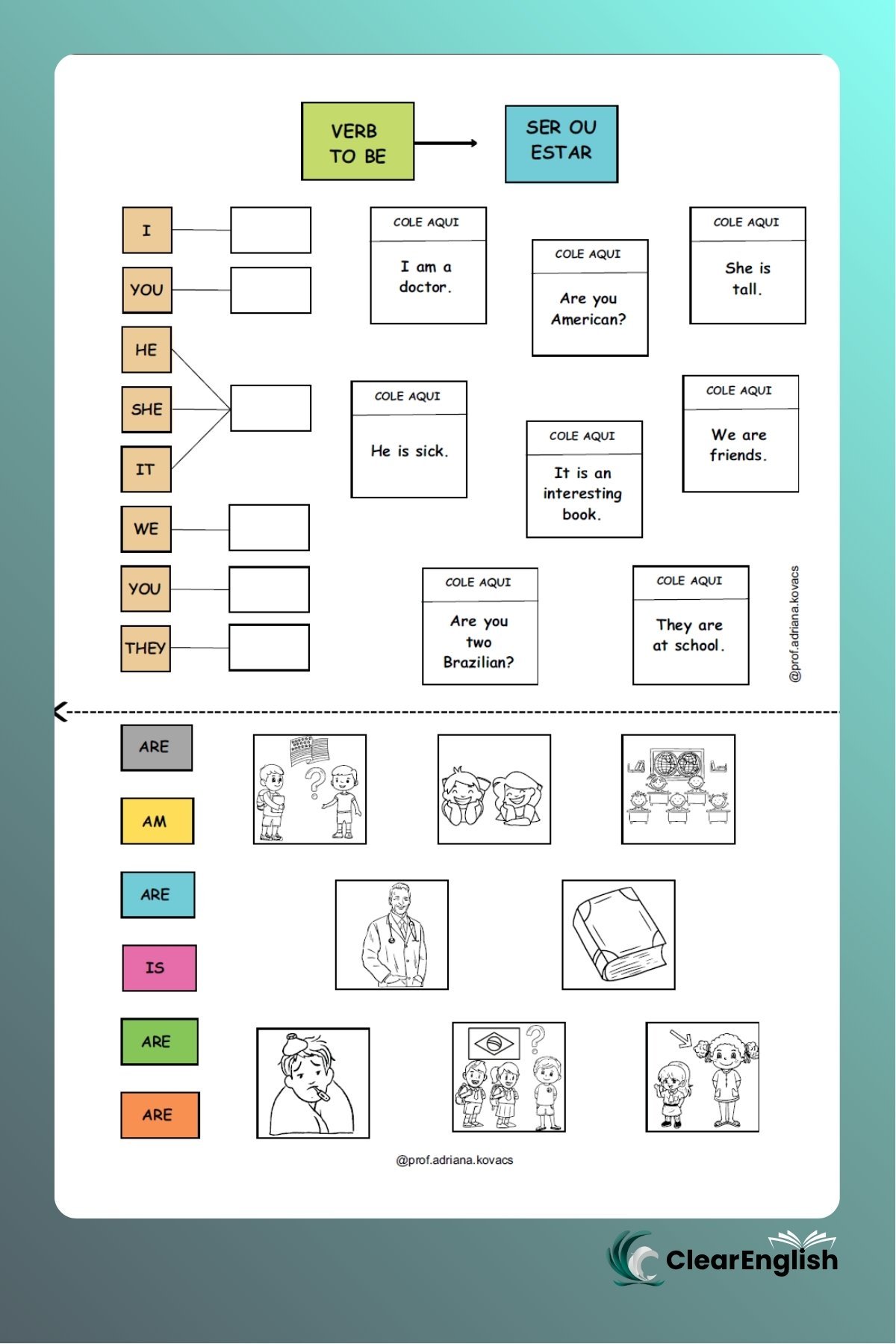 Atendendo a pedidos de vários teachers que querem trabalhar o “VERBO TO BE” de forma diferente e lúdica. Habilidades da BNCC: EF06LI05, EF06LI08, EF06LI09 e EF06LI19.