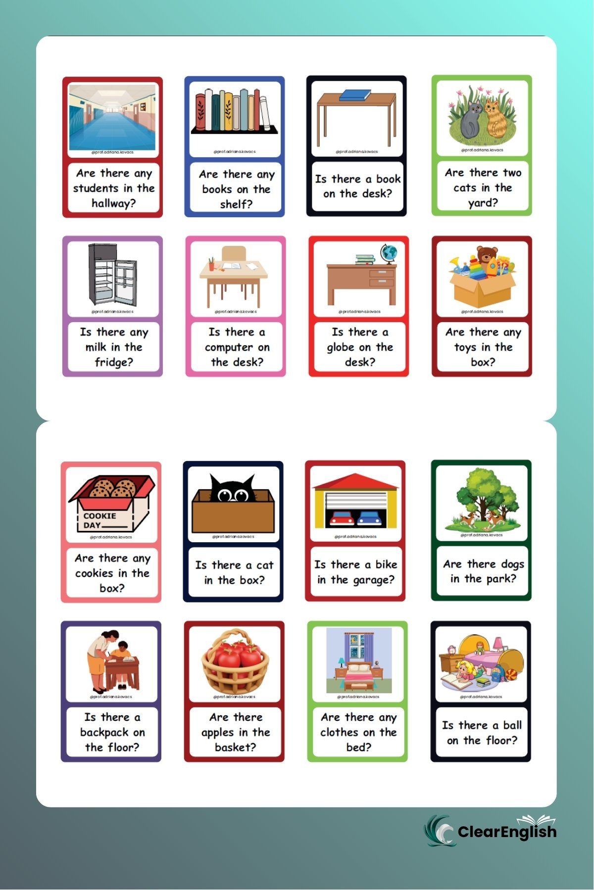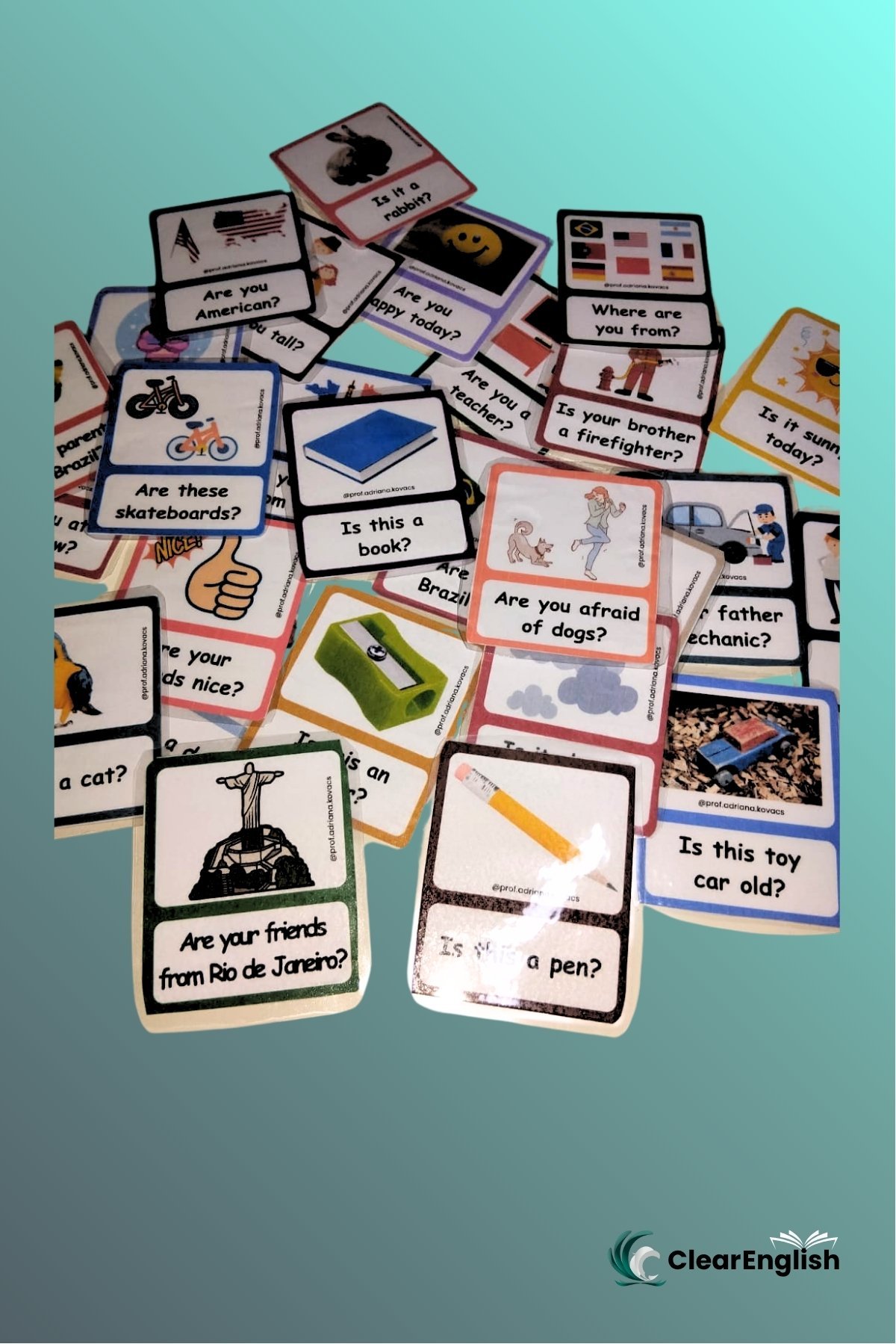 Card game com 40 cartas, perfeito para praticar o verbo to be de forma dinâmica e coletiva! Com perguntas que exigem short answers, o jogo promove a participação oral de todos, mesmo nas turmas grandes.